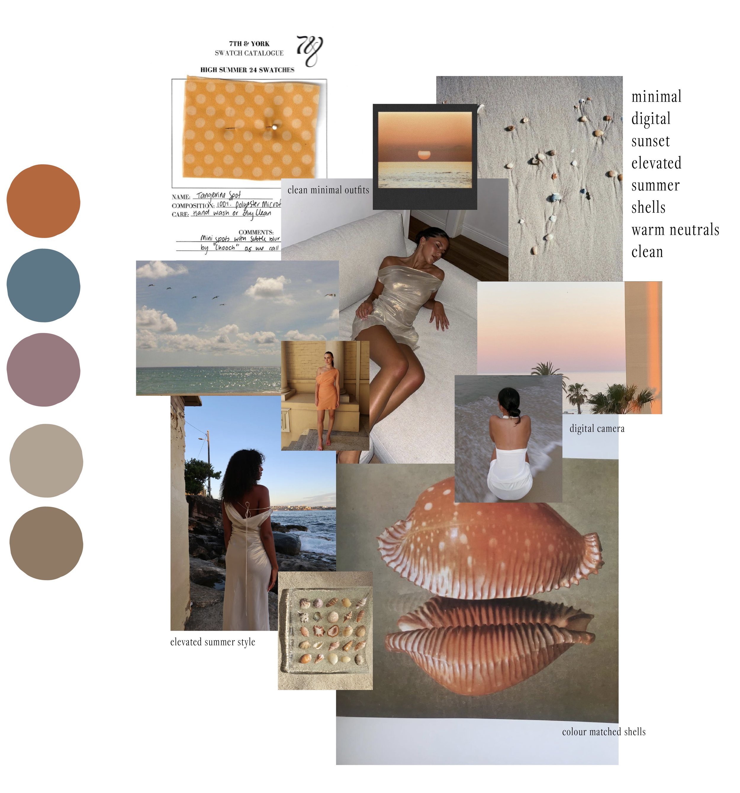 Looking into the brand's current aesthetic, I aimed to develop and advance the refined summer style aesthetic further. By infusing sunset color palettes of warm neutrals and incorporating inspirational images of shells and beaches, I sought to elevate the overall aesthetic and evoke a sense of elevated summer sophistication.