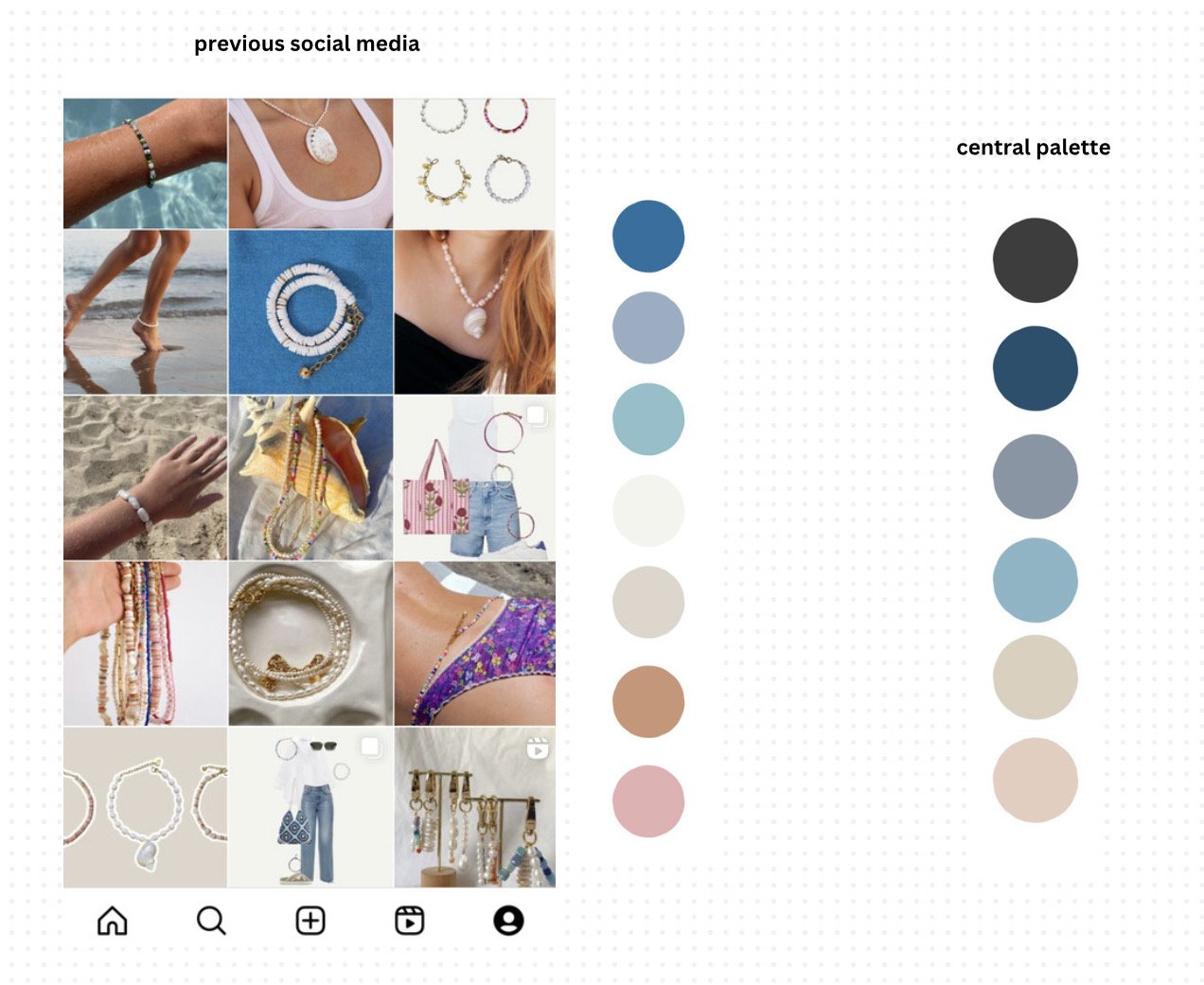 Upon reviewing the current media profile, I have solidified a definitive color palette, amalgamating elements from the existing aesthetic and the inspirational palette. Maintaining a central colour scheme is crucial, considering the brand's accustomed style evident in the current feed. After identifying an aesthetic it will be easier for the brand to move forward with their profile and create clearer more engaging content for the consumer.
